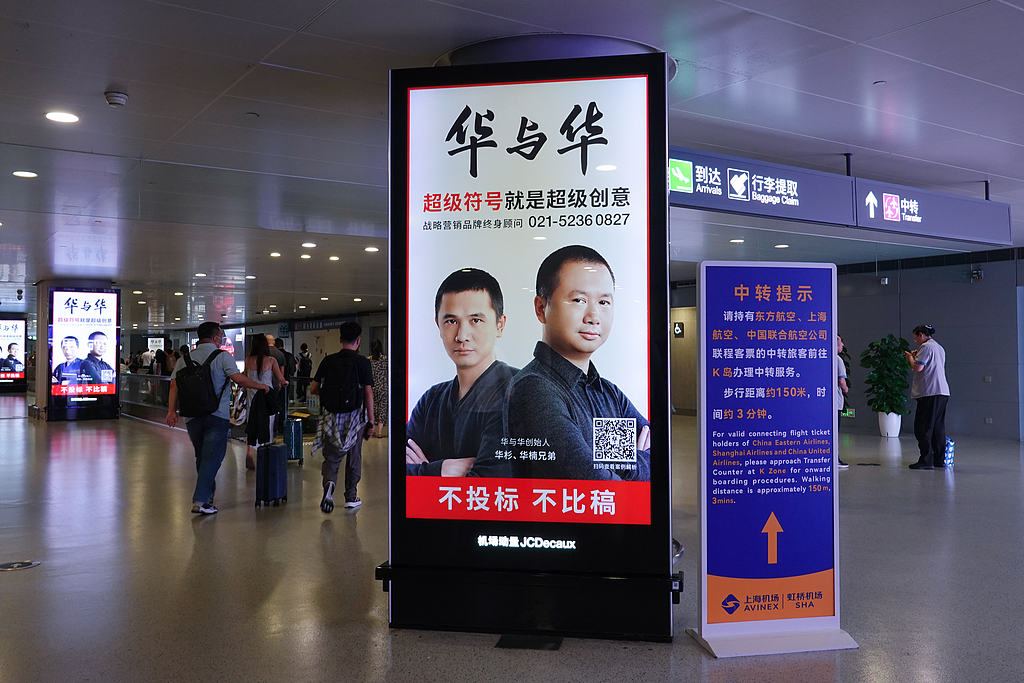 与很多隐在幕后的广告人不同,华杉兄弟也擅长用“超级符号”的方式给自己做包装。人们会频繁在机场、高铁站的大幅广告中看到他们的头像,并且在成功学书架中看到华与华的著作——这也可能是老板们能看到的地方。