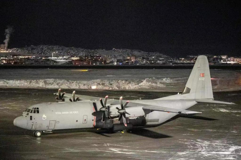 ▲一架丹麦皇家空军的运输机停靠在努克国际机场停机坪上。