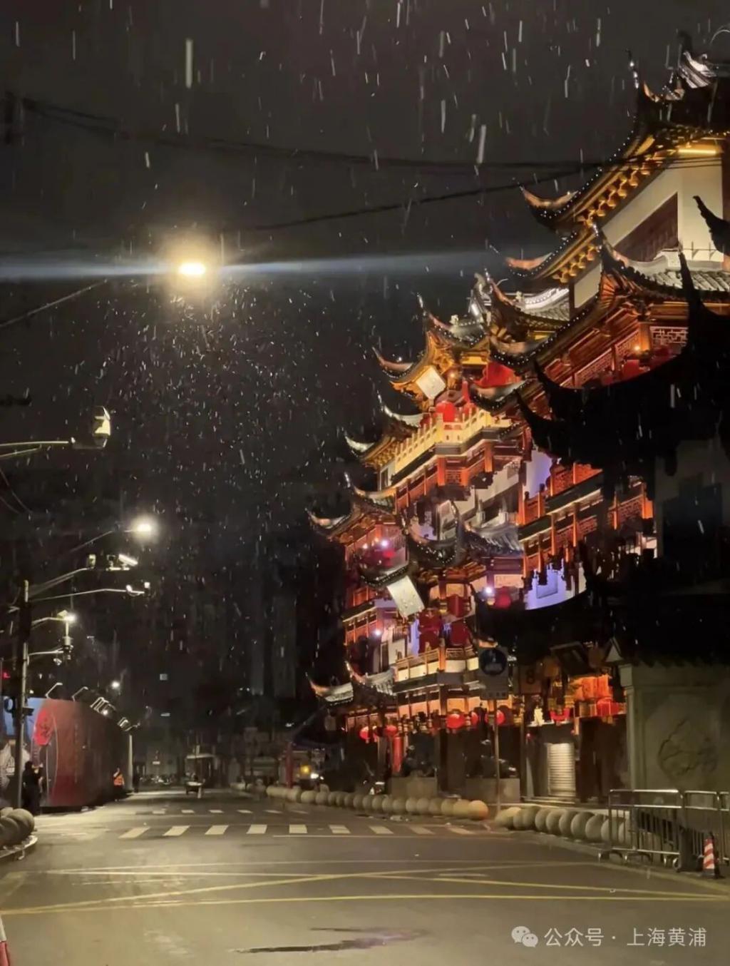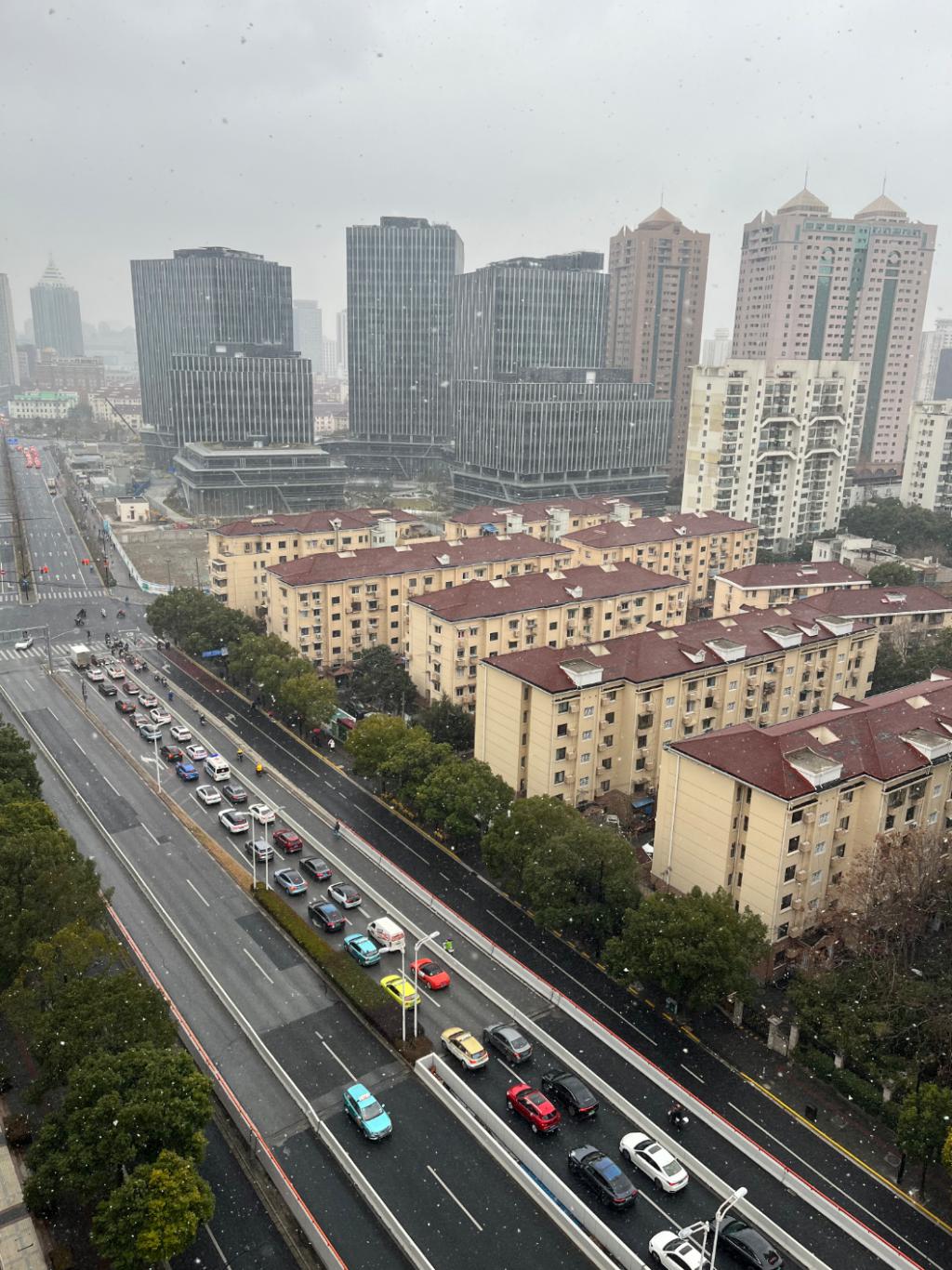 上海今天的雪下得很“认真”,雪景照刷屏