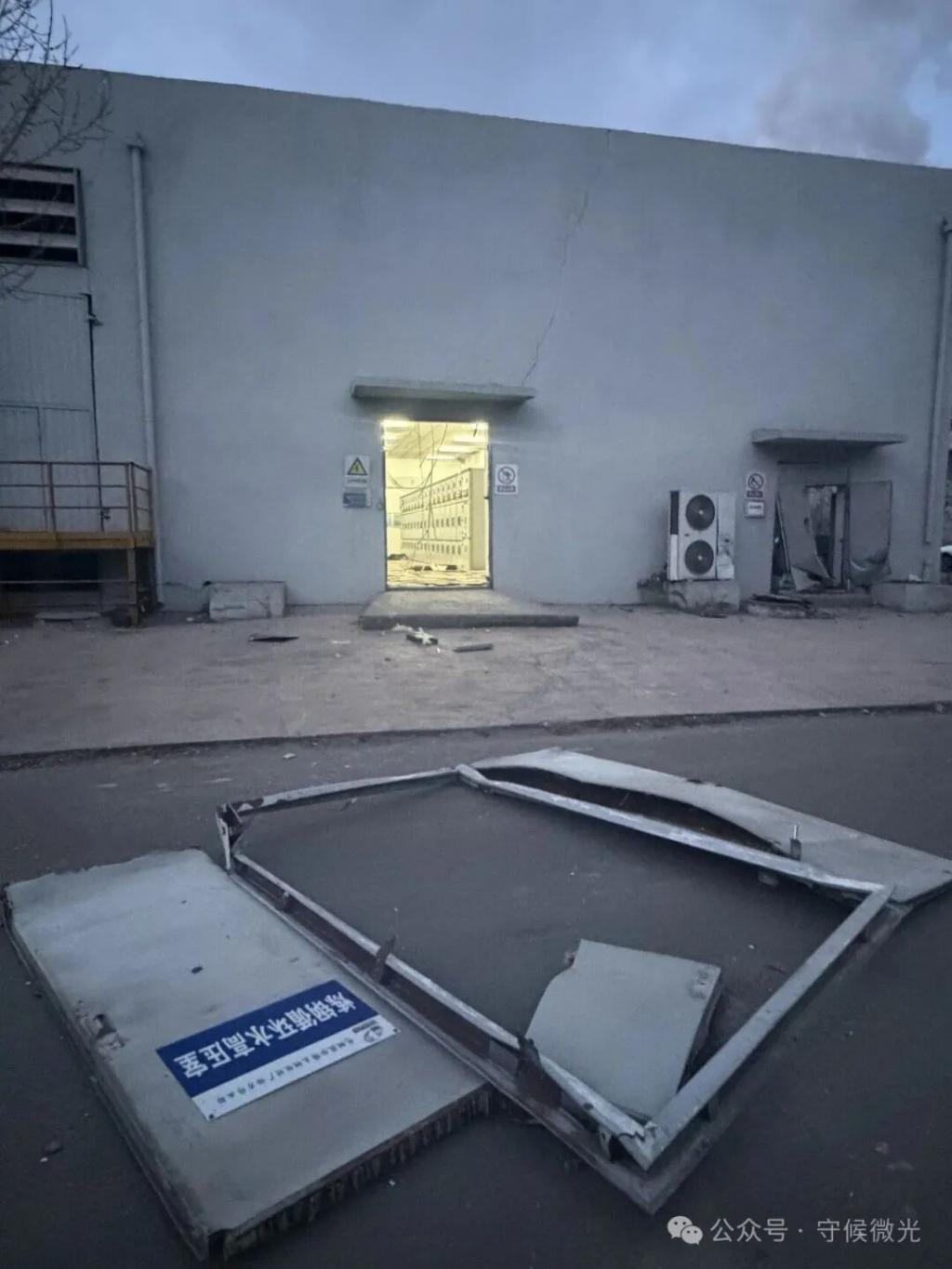 1 月 18 日 17 时许,内蒙古包头市包钢板材厂爆炸事故现场,一扇被爆炸震落的门。中青报 · 中青网记者 石佳 / 摄