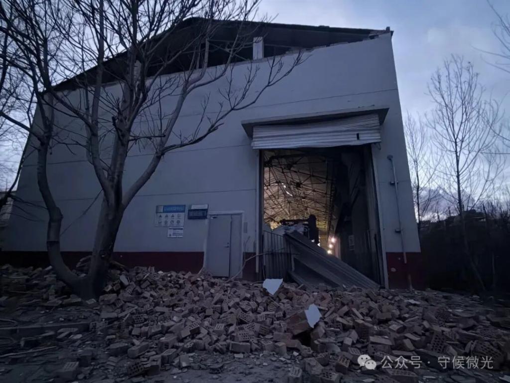 1 月 18 日 17 时许,内蒙古包头市包钢板材厂爆炸事故现场,厂房外的空地上散落着碎裂的砖块。中青报 · 中青网记者 石佳 / 摄