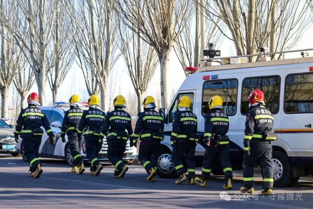 1 月 19 日下午,内蒙古包头市包钢板材厂外,消防人员准备进入厂区救援。中青报 · 中青网记者 石佳 / 摄