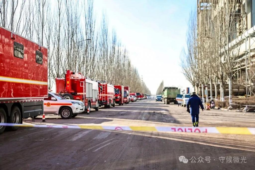 1 月 19 日下午,内蒙古包头市包钢板材厂爆炸事故现场,来自消防、应急、公安、医疗等多支专业救援队伍仍在紧张开展排险救援工作。中青报 · 中青网记者 石佳 / 摄