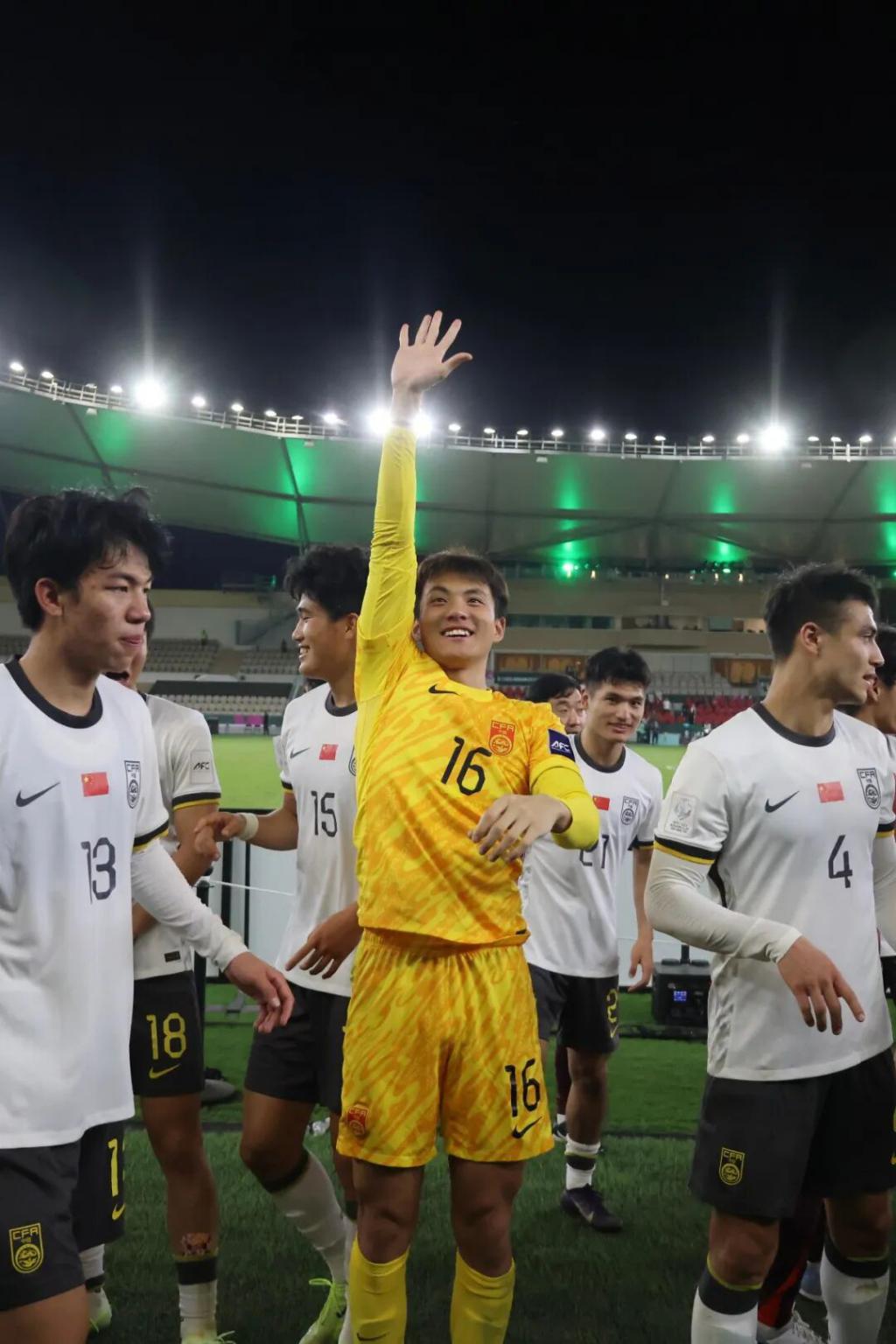 1 月 20 日,中国队守门员李昊(中)在比赛后向观众致意 / 新华社记者 王海洲 摄