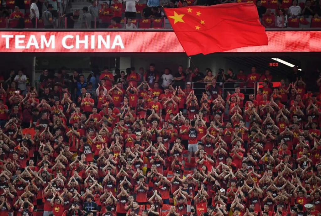2025 年 9 月 9 日,中国队球迷在比赛前加油助威 / 新华社记者 李一博 摄