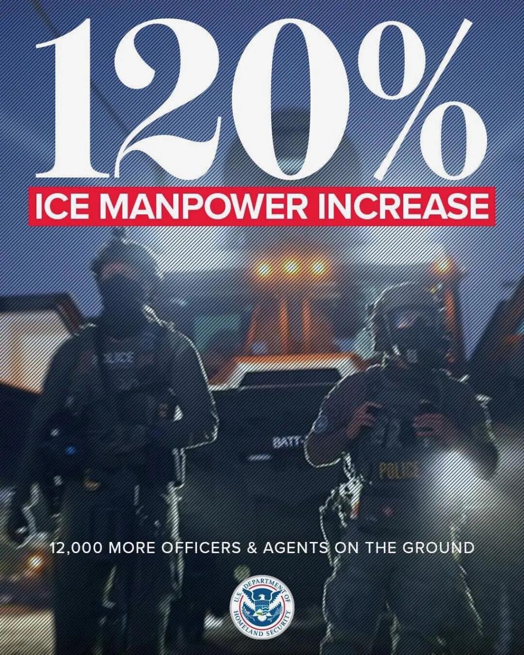 美国国土安全部发布推文,庆祝 ICE 获得了 "120% 的人员扩张 "/ 图源:美国国土安全部