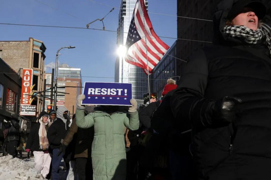 当地时间 2026 年 1 月 23 日,人们在美国明尼苏达州明尼阿波利斯参加街头示威活动 / 新华社发