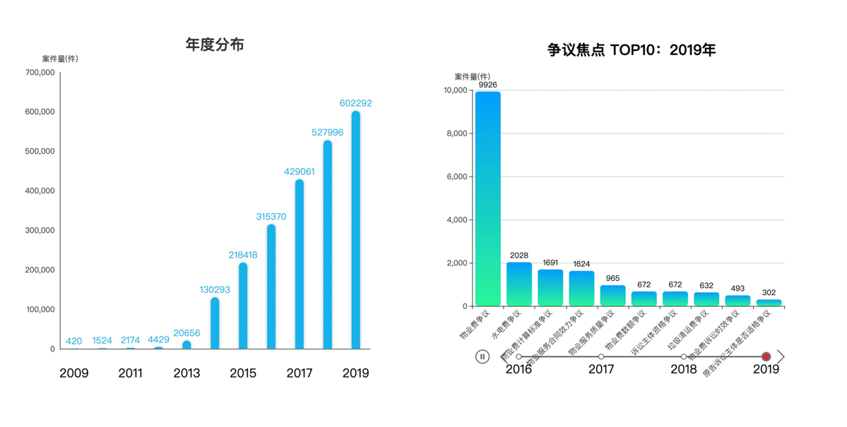 界面新闻搜索中国司法大数据服务网发现,根据公开文书,“物业服务合同纠纷”的民事案件数量在2009年后的10年间呈增长趋势。根据实践经验,李阳含介绍,业主与物业的纠纷较常聚焦于物业服务的标准和质量、物业费用纠纷、公共区域管理和收益、维修资金的使用等。针对颐明园小区的情况,他认为,其在一定程度上也反映了业主们此前可能没有特别强烈的参与公共治理的习惯。“原子化是城市化的结果,不同于以前的熟人社会,当今的业主们可能缺乏共同体的概念。”