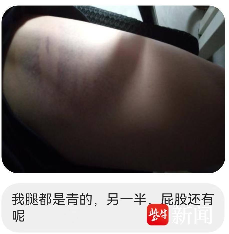 从“小芹”偷偷发回来的照片可以看到,她腿上都是青的,屁股上也有,她说是被木棍打的。