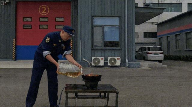 因加入的冷油与锅中热油为同种物质,不会引发剧烈物理或化学反应,能降低热油的整体温度,使其迅速降至燃点以下,进而实现安全灭火。(图源:中国消防)