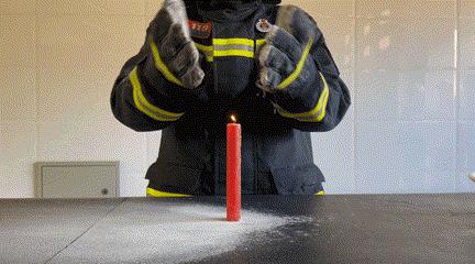 面粉、奶粉、淀粉等是可燃粉尘,倾倒时若空气中悬浮的粉尘颗粒达到一定浓度,遇火就可能爆燃。