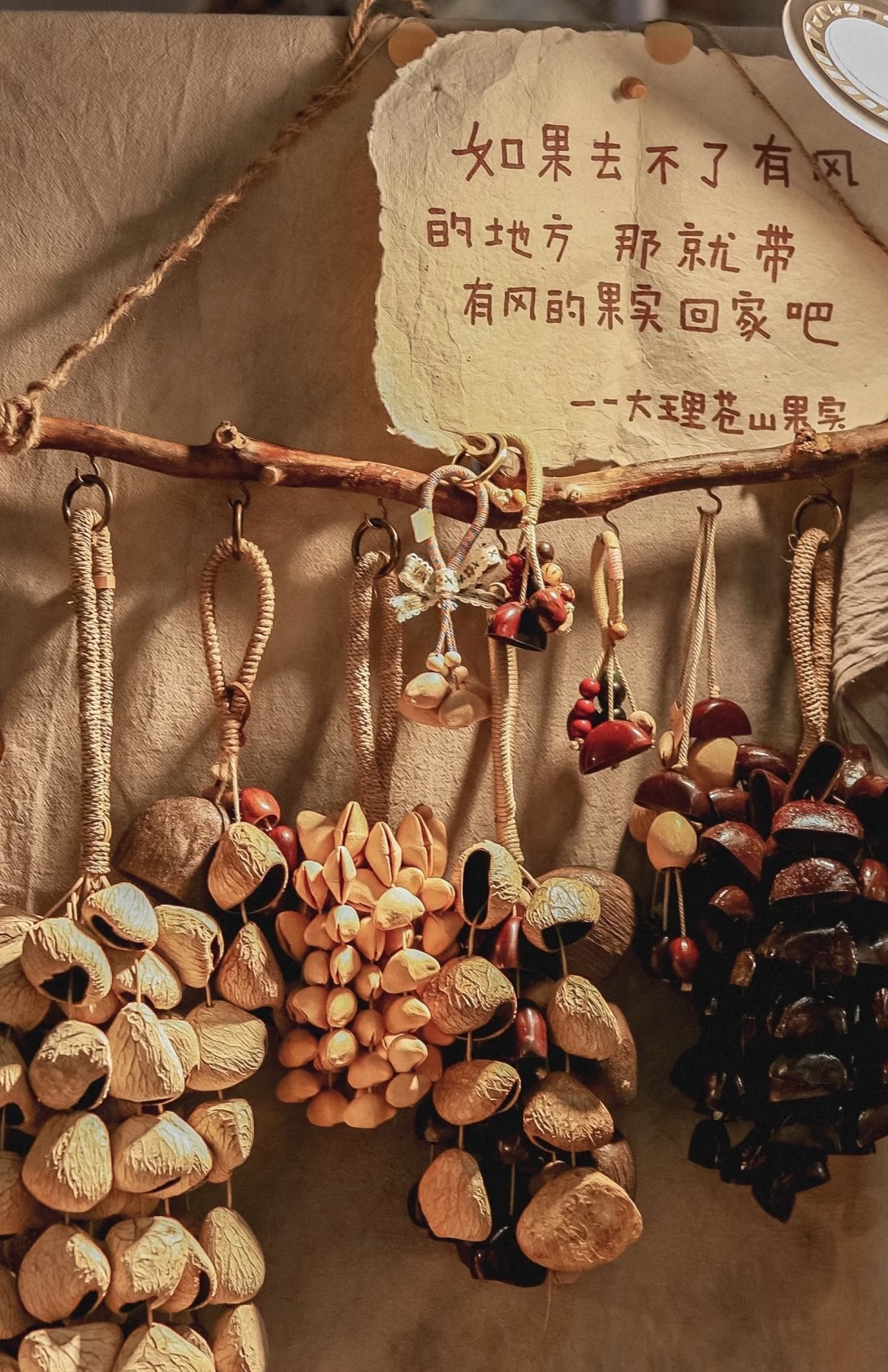 从现场看,HAI550的新春市集在呈现上也整体给人年轻化、国际化的感觉。比如,其销售的年画没有传统的门神却有“贴贴怪”、“困困神”,新年门挂则是由凯蒂猫玩偶改造而成。还有一个颇受欢迎的摊位销售用云南大理干花干果制作的装饰。在这个摊位,有个不少顾客喜欢的打卡招牌,上面写着“如果去不了油封的地方,那就带有风的果实回家吧”。有顾客表示,在这个市集“找到了别处没有的年礼”,“手艺人的故事让物品充满温度”。