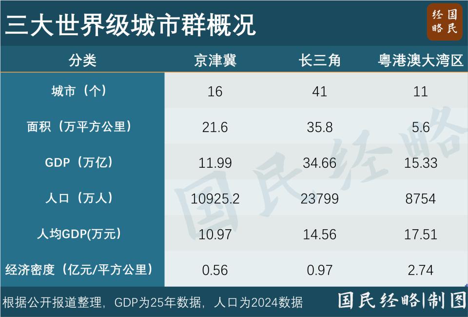 作为我国三大世界级城市群之一,大湾区虽然面积最小,但人均 GDP、地均 GDP 均位居首位。