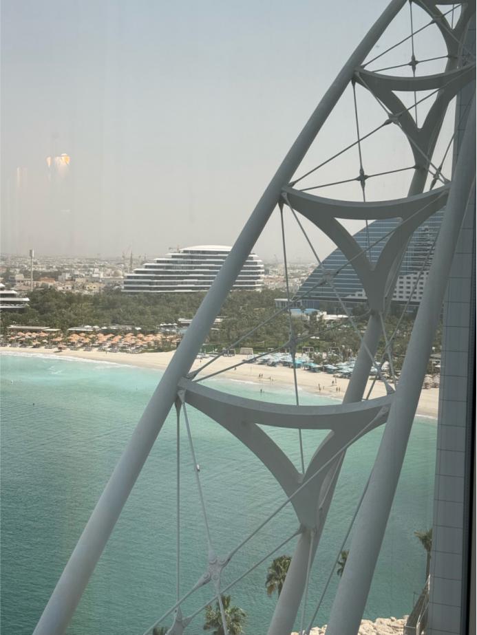 北京时间 3 月 2 日,15:27、当地时间 11:27,沈女士透过帆船酒店房间拍到的海滩。受访者供图