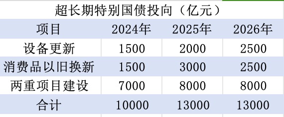 从2024年开始,中国开始发行超长期特别国债,用于“两重”、“两新”领域。
