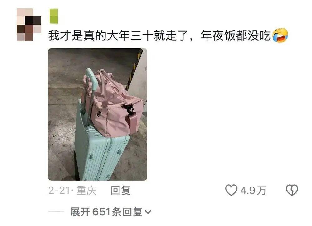 回想过年那几天,社交平台上的热闹充满了诡异的气氛,铺天盖地都是哪怕买硬座站票也要连夜跑路的年轻人。