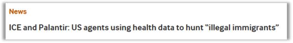 特总想驱逐非法移民了,帕兰提尔就利用医疗信息、上网记录、水电账单等数据筛选出目标群体,在地图里把他们圈出来,然后把这些画好红圈的地图交给 ICE,由一线警员 " 逐个击破 "。