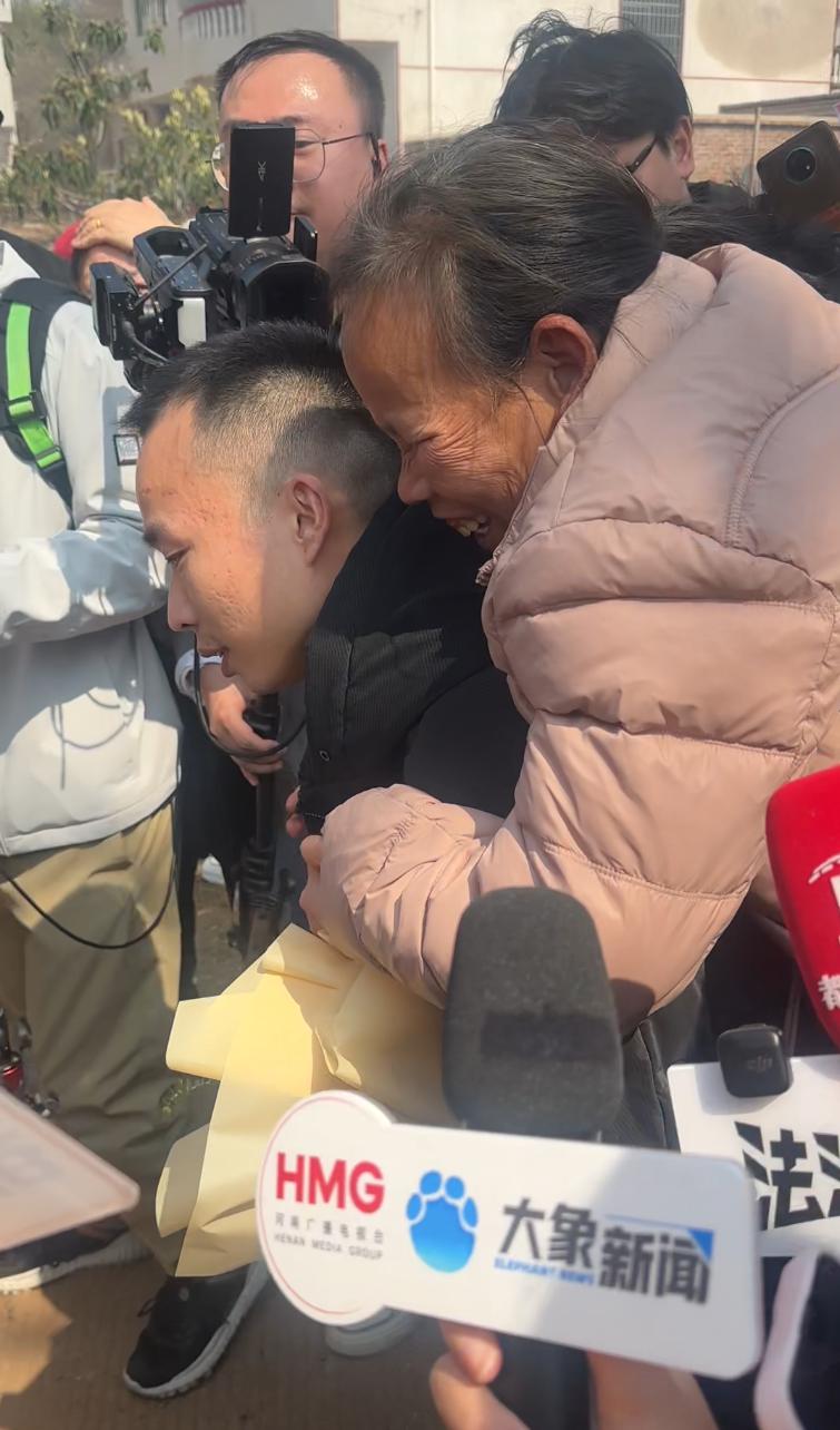 3 月 12 日,随着震耳欲聋的鞭炮声响起,小腾终于和阔别 30 年的亲人紧紧抱在了一起。这一抱,是聋哑妈妈谢熊香盼了整整 30 年的拥抱。