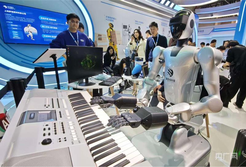 AWE 展台,机器人在演奏(央广网记者 林馥榆 摄)