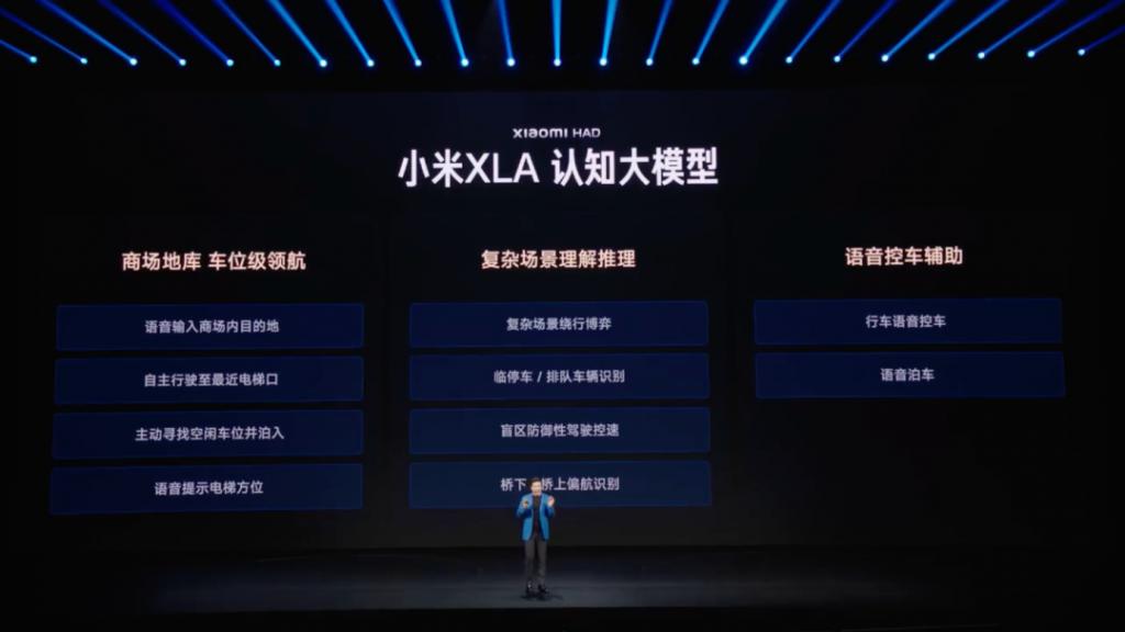 软件层面,小米 HAD 辅助驾驶全新升级 XLA 认知大模型,从数据驱动迈入认知驱动的新范式。该模型融入了小米自研的 MiMo-Embodied 具身基座模型,能更好地理解和学习复杂场景,支持语音辅助控制行车、泊车,执行变道、加减速等操作;支持全国 3000+ 商场地库车位级领航,包含 25 项安全辅助功能,