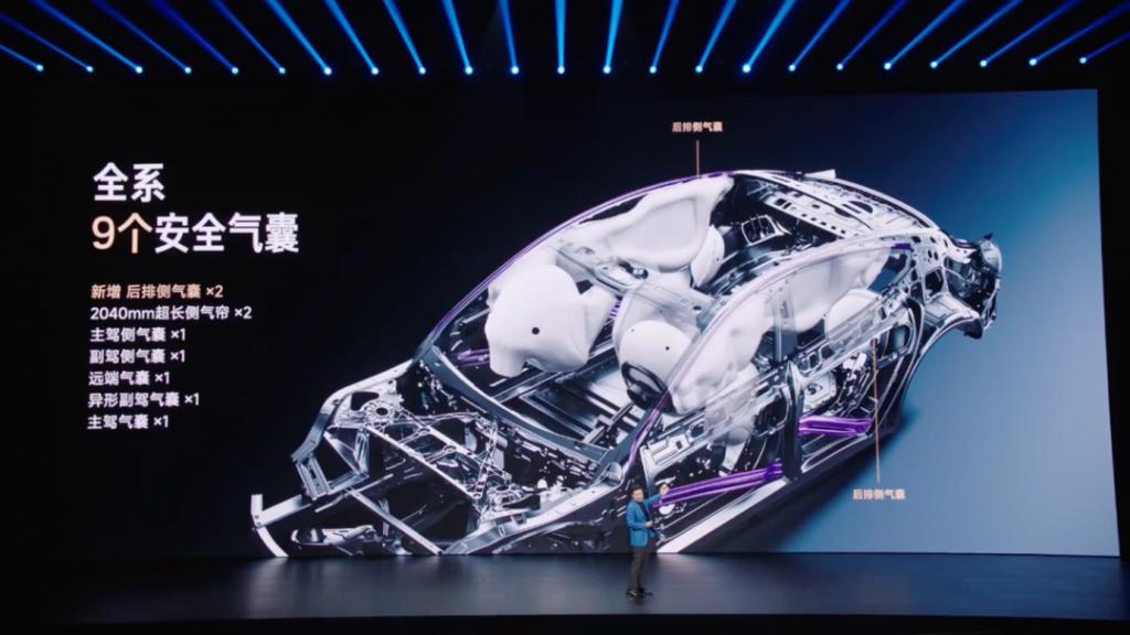 安全性方面,新一代 SU7 全系标配 9 个安全气囊(相比老款新增后排左右侧气囊)、2200MPa 热成型钢全车四门防撞梁及内嵌式防滚架。