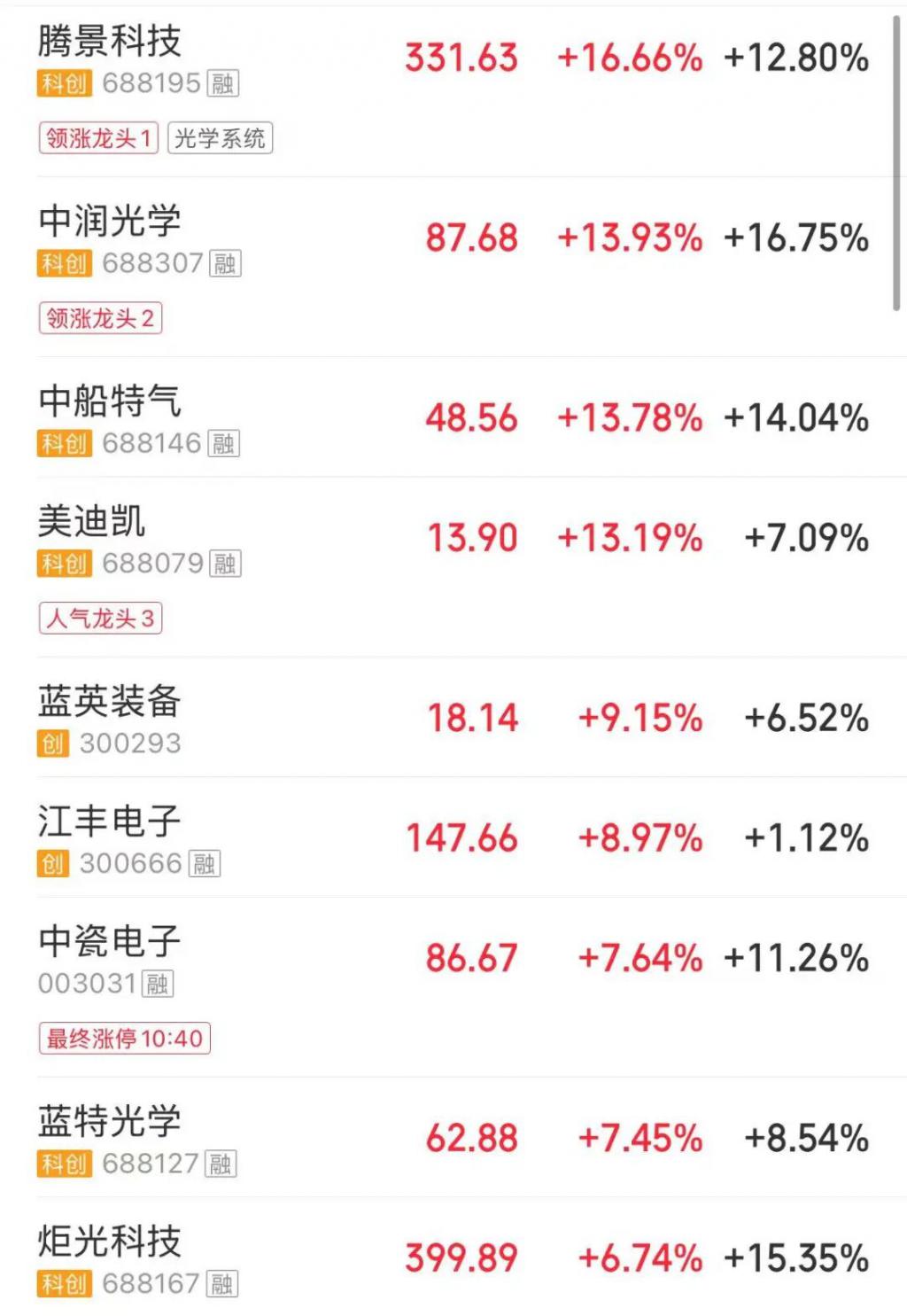 光刻机、光刻胶概念股活跃,中润光学、中船特气、美迪凯涨超 10%。