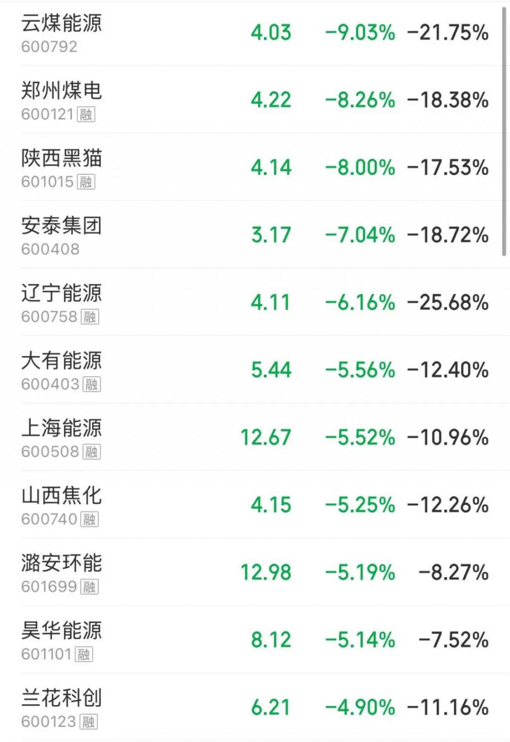 下跌方面,煤炭板块调整,云煤能源接近跌停。