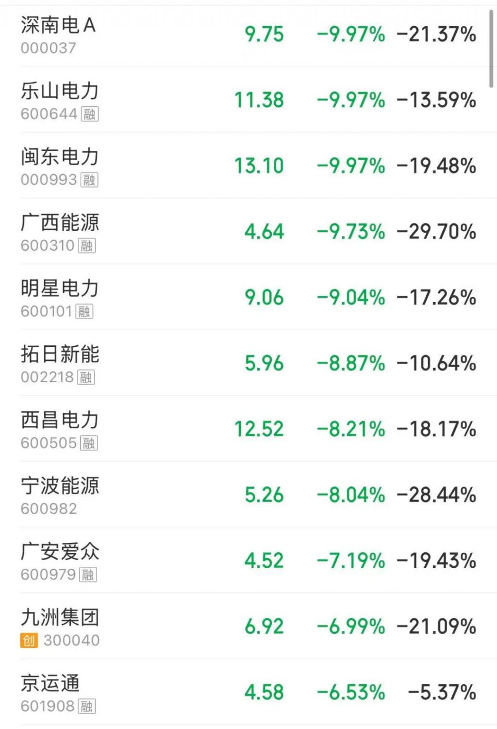 电力股集体下挫,乐山电力、闽东电力触及跌停。