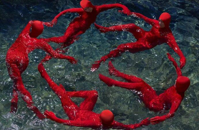 茱莉亚还亲自上阵,给女模特涂满了颜料。