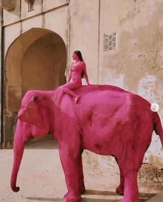 这太美了,这太绝了,我想找头大象涂成全粉色,再找个穿少一点的模特也全身涂满粉色,让她骑着粉色大象过古门!Let ’ s 艺术!