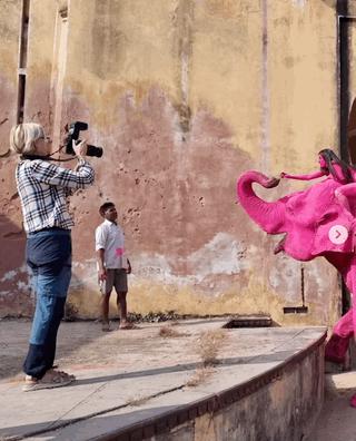 前段时间,茱莉亚在斋浦尔待了 6 周,并以斋浦尔标志性的粉色为灵感,创作了一系列照片。