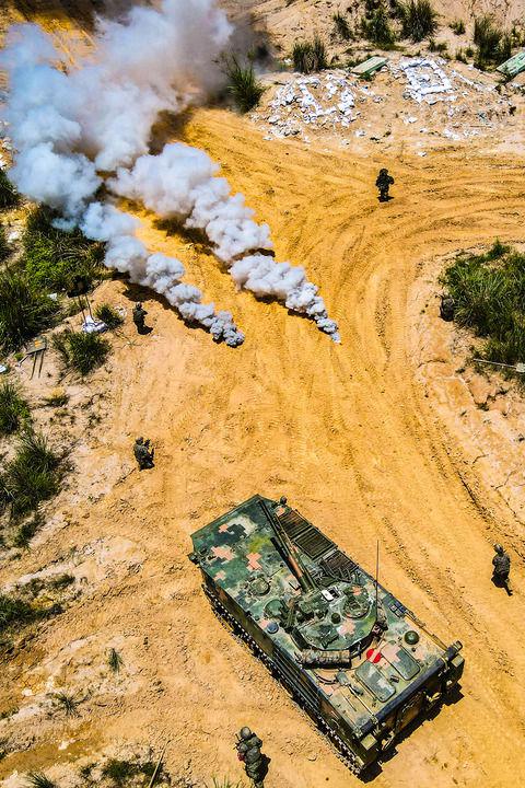 陆军第73集团军某旅"强军精武红四连"组织官兵开展连贯战术训练(2023年5月30日摄)。新华社发(刘志勇 摄)