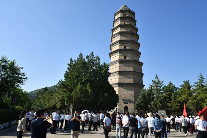 游客在延安宝塔山参观(2023年6月30日摄)。新华社记者 张博文 摄