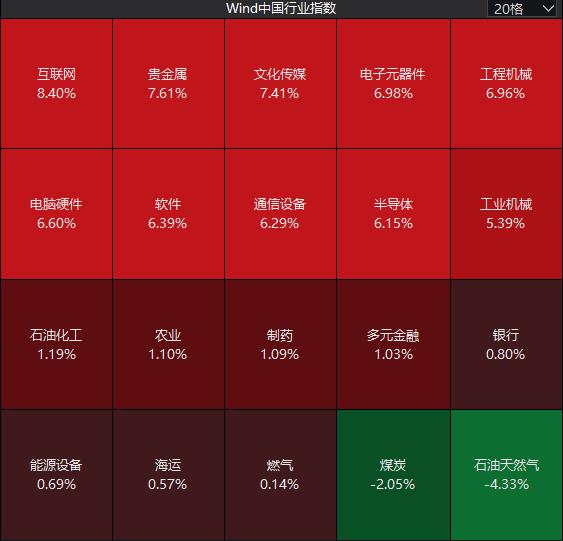 全市场超 5100 只个股上涨,其中 135 只个股涨停,连续两日超百股涨停。沪深两市成交额 2.43 万亿元,较上一个交易日放量 8201 亿。