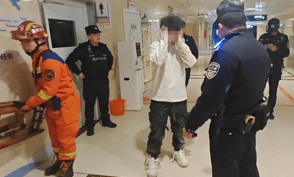 医院卫生间天花板内传来动静,打开一看竟藏了个人