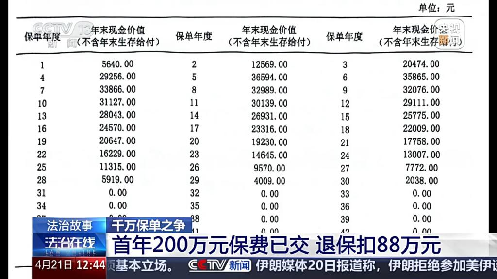 杨凌波:按照保险合同的规定,原告需要每年缴纳 200 万元,连续缴纳 5 年也就是要缴纳 1000 万元。在投保人过世之后,这 1000 万元才能取出,就相当于原告在有生之年只能领取少量的利息,1000 万元的巨额本金无法支出。