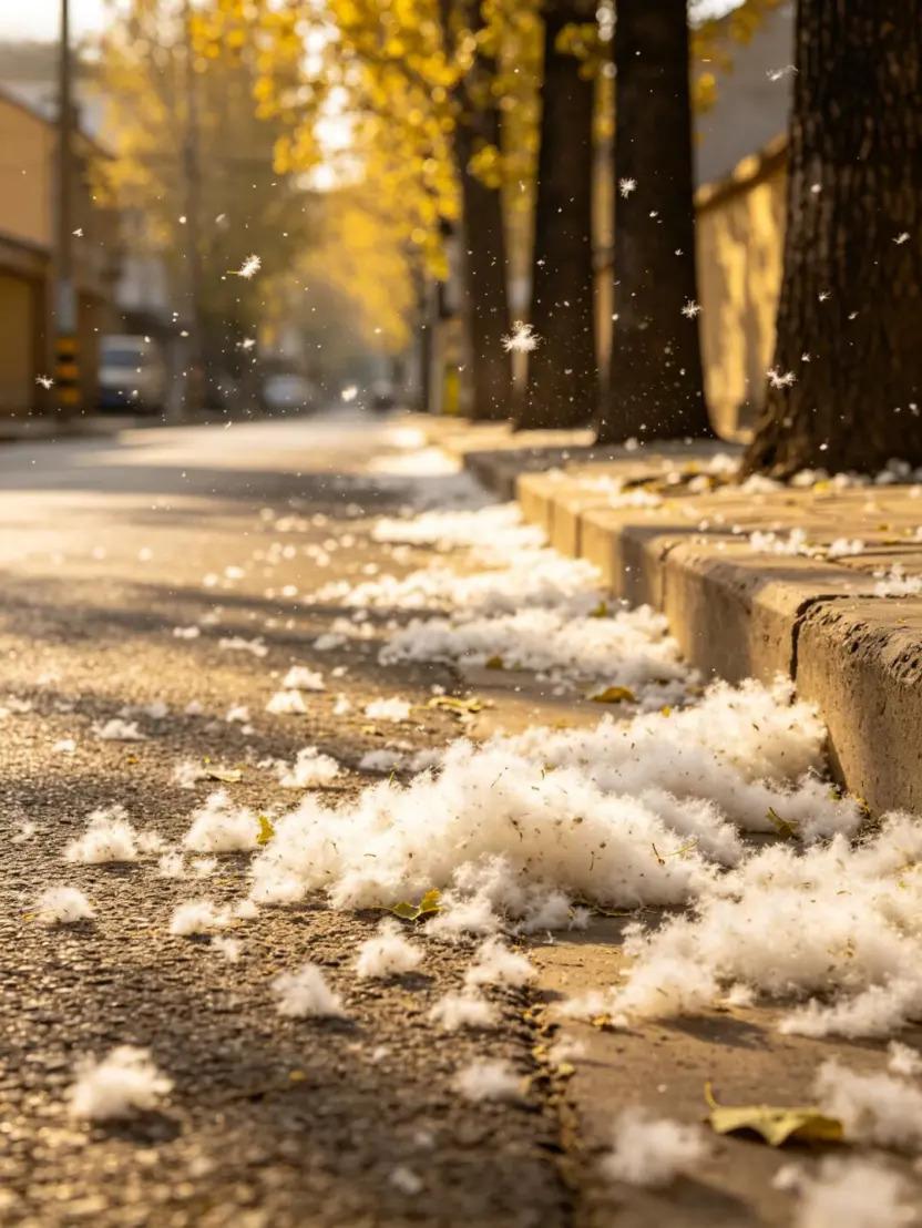 4 月初开启飞絮模式的是白毛杨;白毛杨还没飘完,垂柳旱柳的毛毛就紧随其后;直到 5 月下旬,欧美杨还能制造最后一波飞絮。