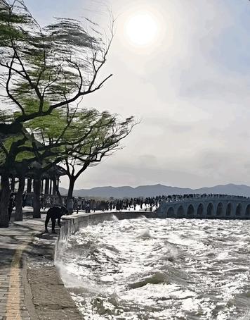 北京的大风一吹起来,可以直接让人在颐和园看海。