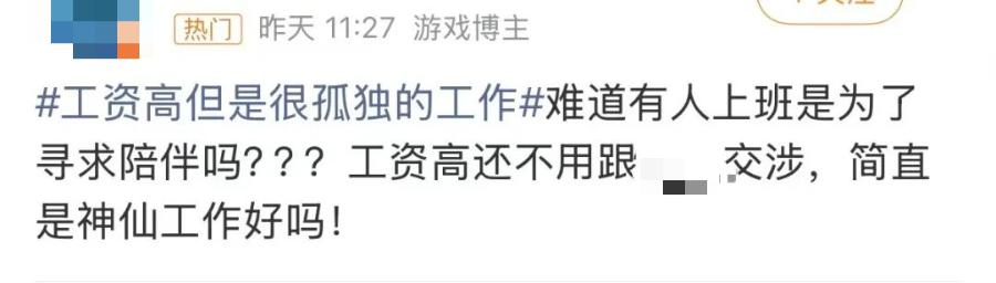 对此,有网友表示,喜欢这样的工作,不和他人接触很好。