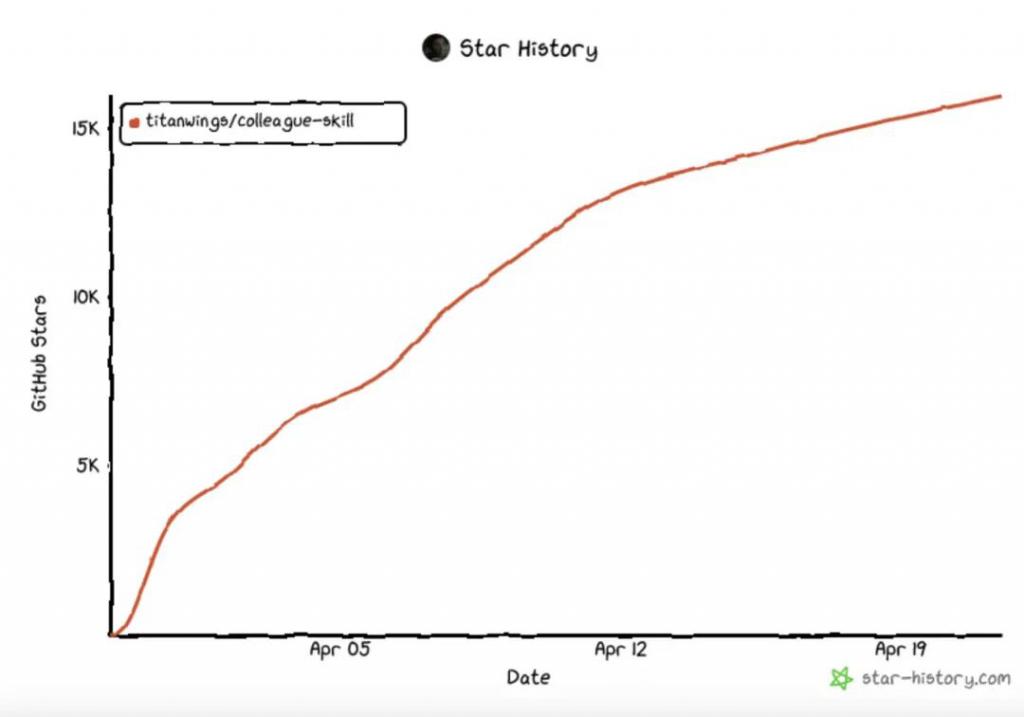 " 同事 .skill" 项目上线五天,就在 GitHub 收获了超过 6600 颗星。截至 4 月初,星标数已逼近 7 万。作为参照,登顶星标榜首的 OpenClaw,星标数为 25 万。