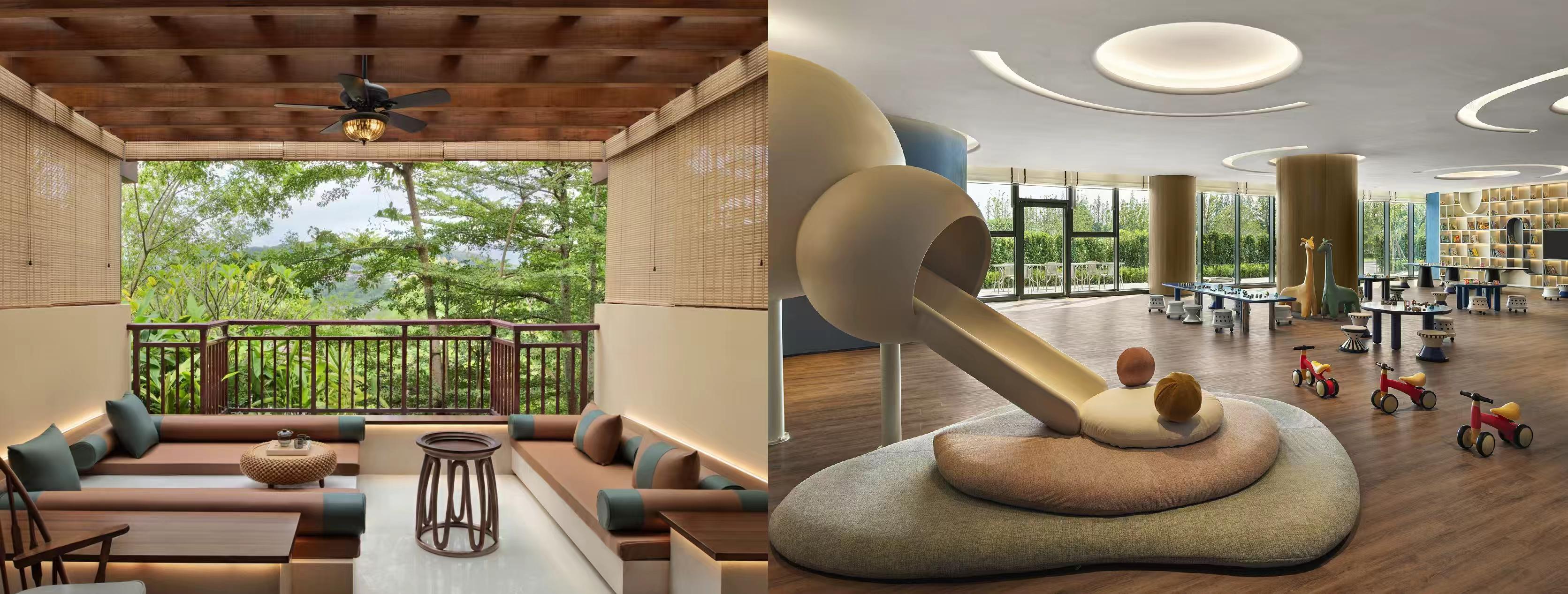 左:西双版纳云投喜来登大酒店椰林蕉影环绕;右:昆山淀山湖喜来登酒店童趣乐园