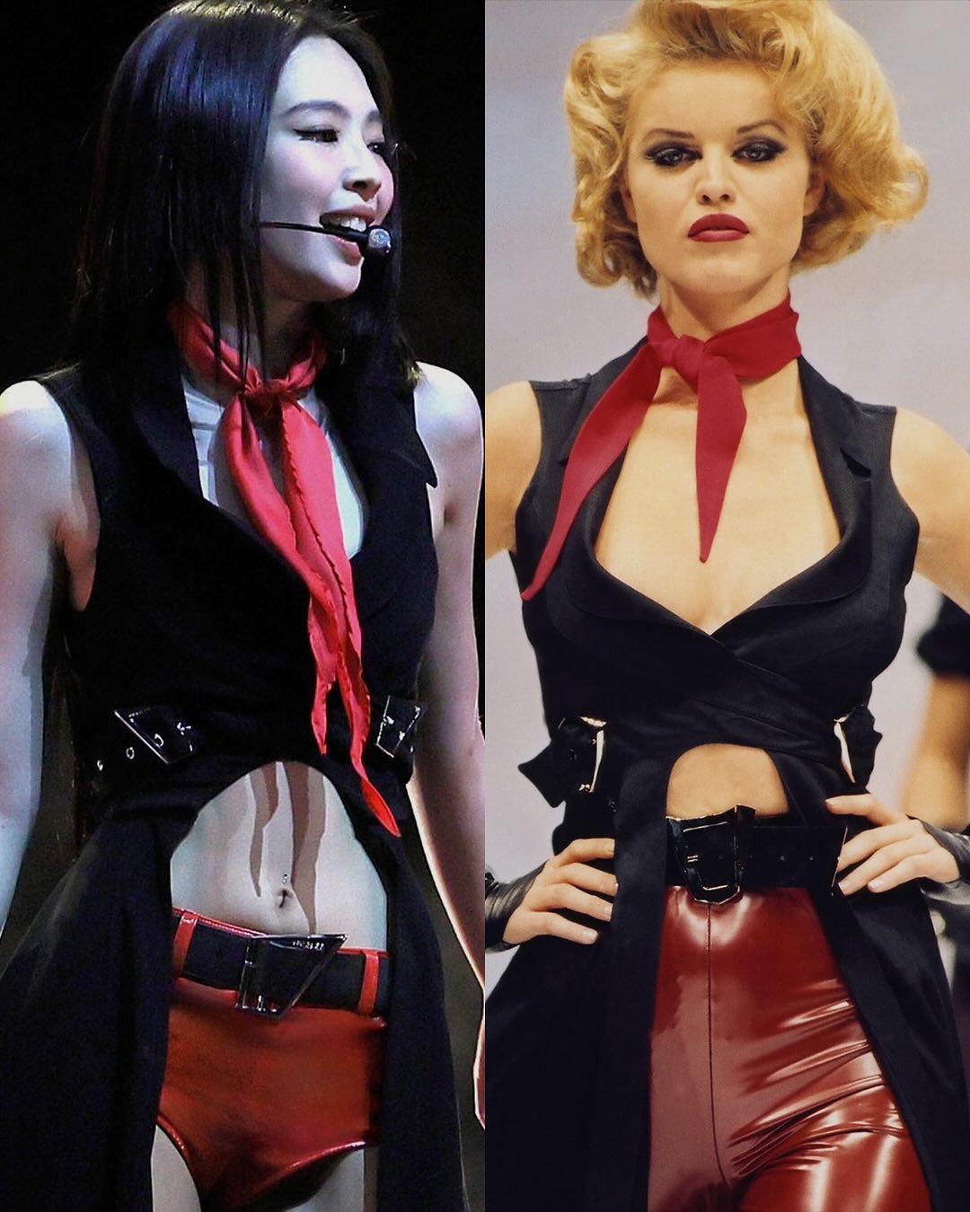 珍妮并不是第一个利用该系列遗产的流行偶像。早在2008年,碧昂斯在宣传她的专辑“I Am…Sasha Fierce”时,就穿着一件来自Les Cow-boys的摩托车风格紧身胸衣。