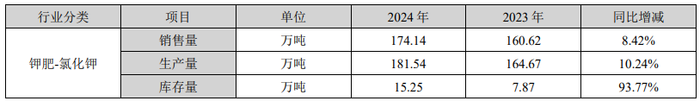 销量方面,亚钾国际去年销量174.14万吨,较2023年的160.62万吨增加了8.42%。