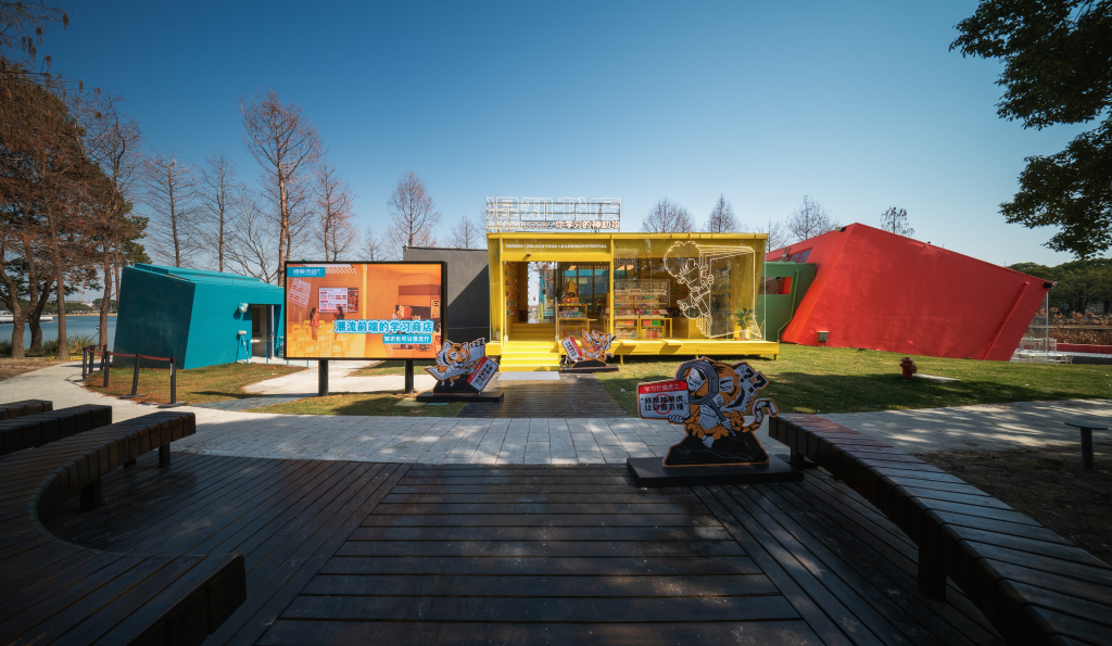 其中,混知书店(远香湖知识馆)是混知文化发挥所擅长的漫画式、视觉化知识解读的优势,在远香湖畔打造的综合性潮流场馆。书店的外观由红黄绿三色盒子造型的空间组合而成,内部不同区域结合功能营造明快活泼的氛围。“景秀荟”景德镇红叶国瓷文化馆围绕国瓷文化与茶文化,打造陶瓷文化展厅与陶瓷工坊,推出陶瓷文化市民美育活动。“有点艺思”蜡像馆主打蜡像艺术馆展览与沉浸式展出。泰当代·湖畔艺术画廊,是一个承载展览展示、艺术美育、休闲咖吧等功能的文化艺术公共空间,为艺术家提供艺术展示交流、传统非遗文化传播平台。