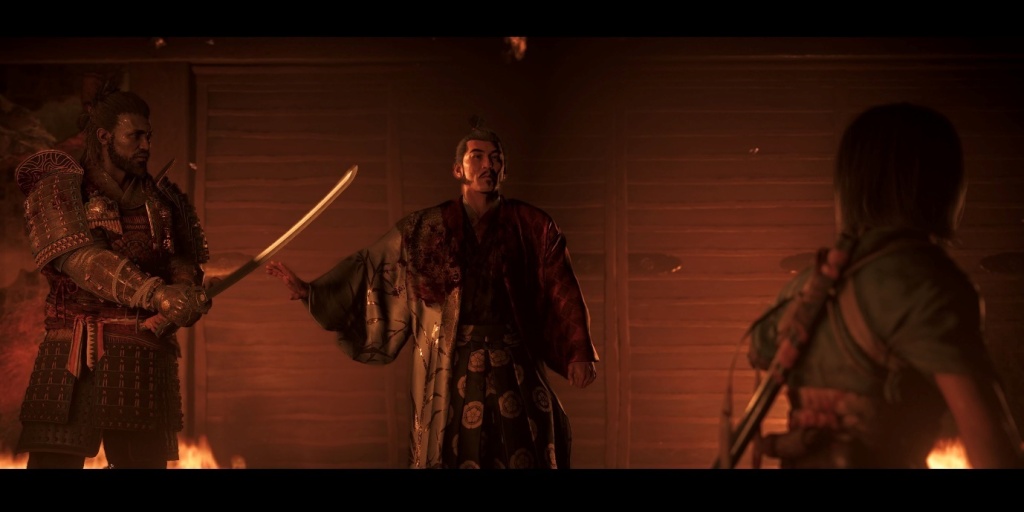 在这一部分游戏体验中,游戏呈现给玩家的观感颇为不俗——每一步都节奏明快、情绪扎实。剧情的第一个高潮出现在本能寺之变,在这场火与血交织的夜晚,奈绪江与弥助的命运第一次正面交锋,也奠定了整个游戏的情感基调:复仇与悔恨。优秀的场面调度和恰到好处的配乐,既完成了对这个经典历史事件的重写,也靠调动玩家情绪带过了一些为了合理化剧情不得不妥协的情节bug。
