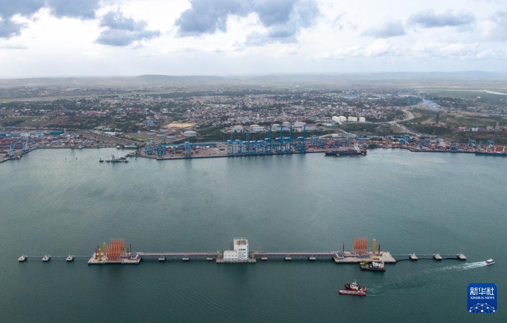 这是 2024 年 8 月 15 日在肯尼亚蒙巴萨拍摄的油码头和蒙巴萨港(无人机照片)。 新华社记者 王冠森 摄