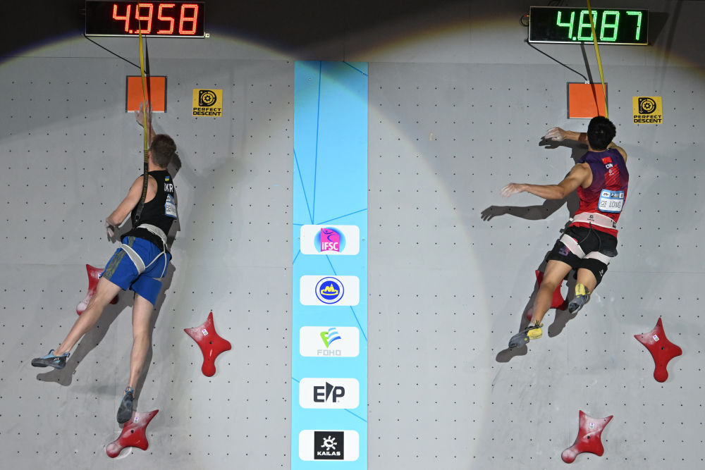 另一场半决赛中,中国名将龙见国以4秒81刷新个人最好成绩,将当日表现最稳定的印度尼西亚选手卡蒂宾淘汰。决赛中,龙见国又爬出4秒88的好成绩,力压乌克兰选手伊尔奇申0.1秒夺冠。卡蒂宾在铜牌赛中爬出4秒75平亚洲纪录的成绩获得第三。
