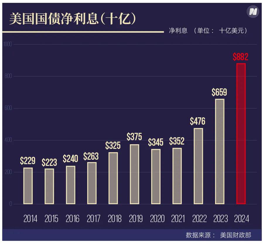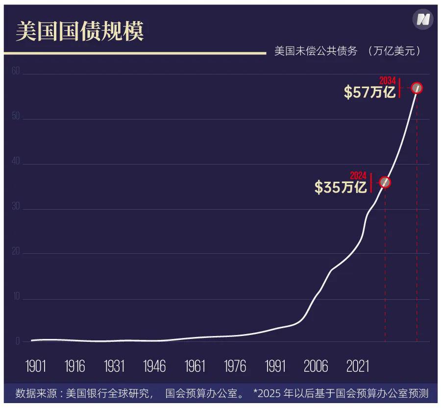 从经济角度来说,美国高达 36 万亿美元的债务是悬在美国总统头上的炸弹。特朗普逼迫鲍威尔降息(不降息就下台)的原因之一,就是他不想这枚 " 炸弹 " 在他的任内爆炸。
