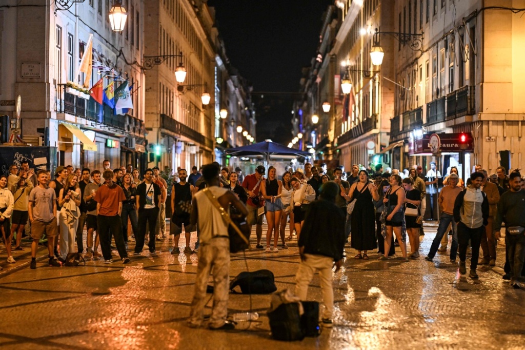 4月28日,人们在葡萄牙首都里斯本奥古斯塔街欣赏街头表演。葡萄牙28日早些时候发生的全国大停电正逐步得到解除,当晚全国约有三分之一的用户已经恢复供电。葡总理蒙特内格罗当晚表示,电力供应将在未来几小时内全面恢复。新华社 图