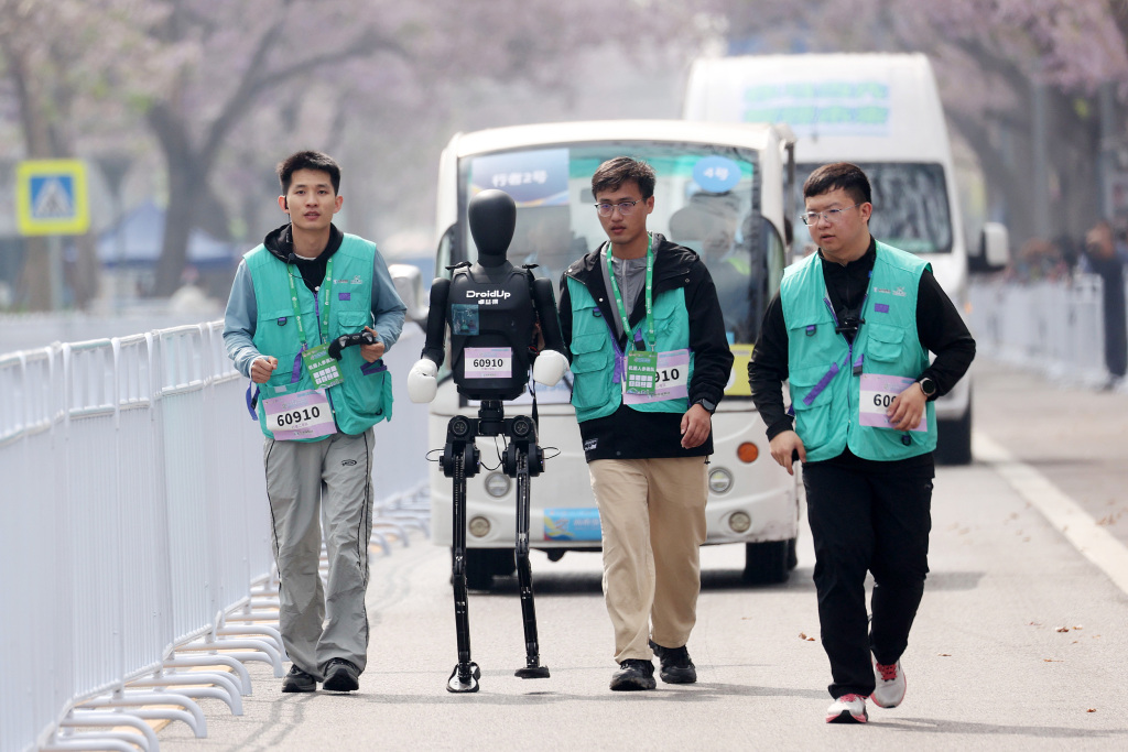 2025年4月19日,北京亦庄半程马拉松暨人形机器人半程马拉松,行者二号队选手卓益德在比赛中。视觉中国 图